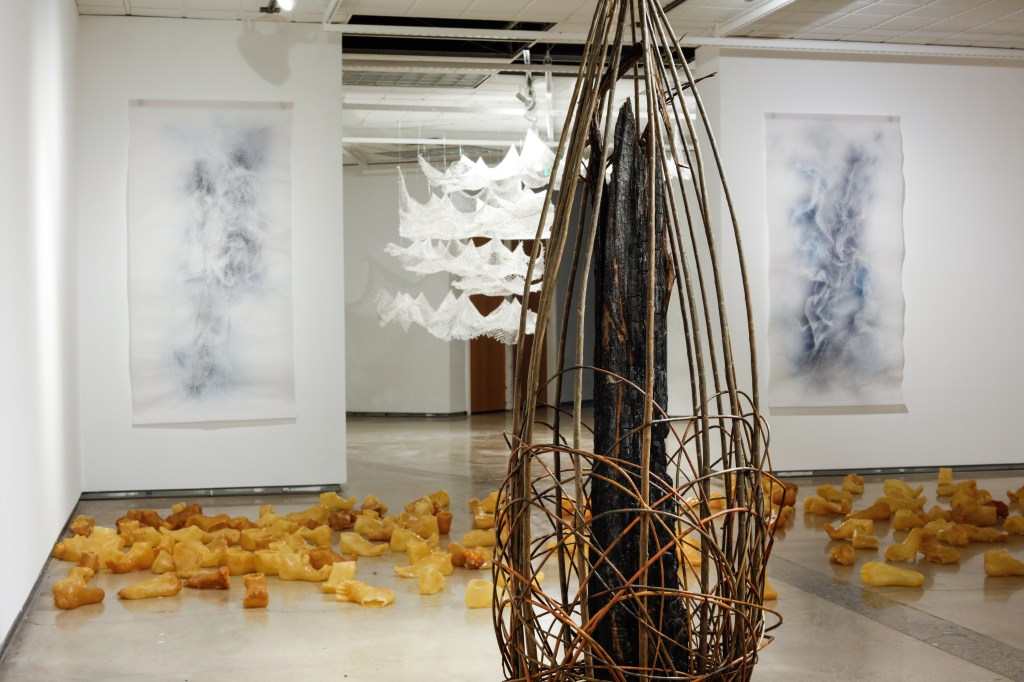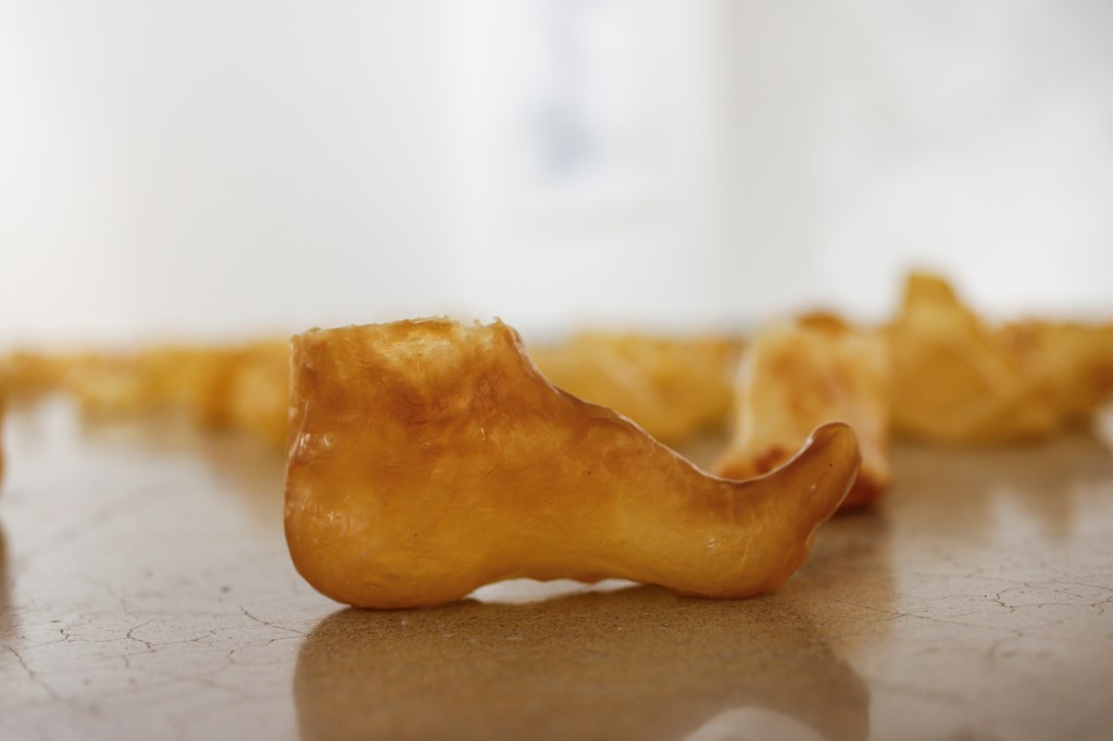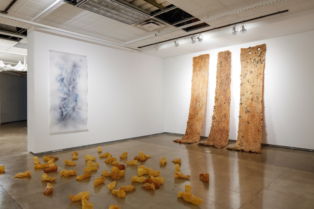 Working in dialogue with ideas of counter sovereignty, I seek to undo the boundaries that define ownership, authorship, and control. The latex itself resists permanence; it shifts color, shrinks, and breaks down, asserting its own agency. This instability mirrors the unsettled state of the environments from which it comes, where resilience and collapse coexist. By yielding authority to the materials and to the living systems they emerge from, I aim to imagine other ways of belonging rooted in reciprocity, vulnerability, and the capacity to listen.