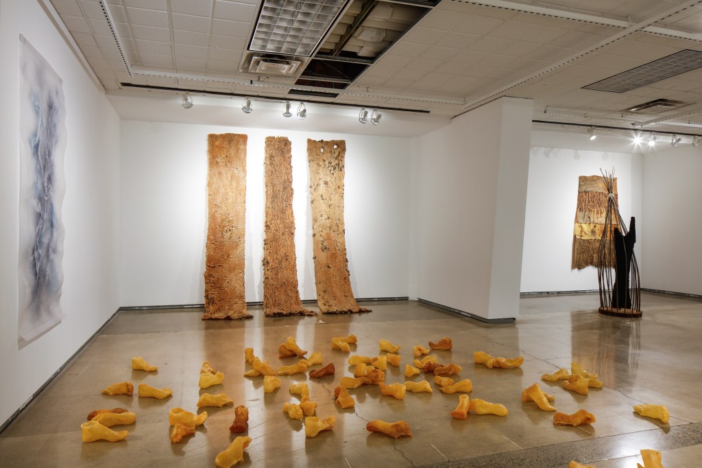 My recent work examines the fragile and reciprocal relationships between human and nonhuman worlds. Cast from the bark of distressed trees, my latex skins register moments of ecological rupture and renewal. These surfaces are not reproductions but collaborations, acts of listening and care that challenge human claims to mastery over the natural world. Each impression documents a shared temporality: the time of the tree’s healing, the time of material transformation, and the time of human attention.