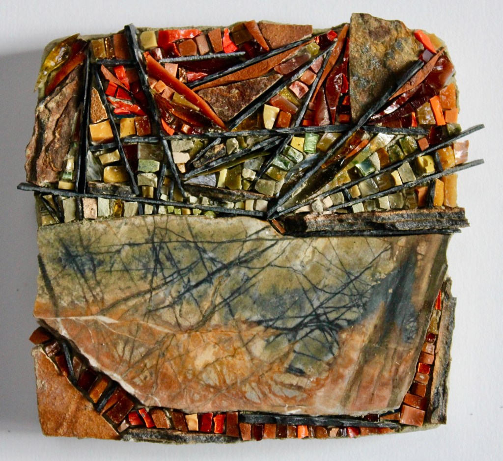 Picasso stone, slate, Italian smalti, 24K gold, marble
